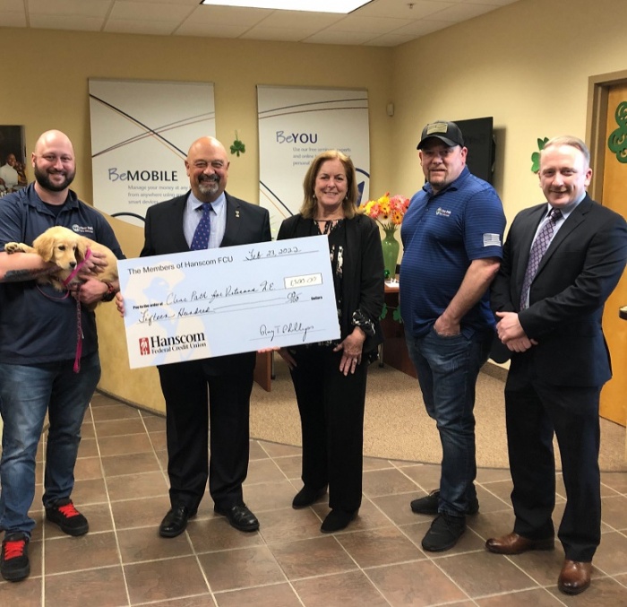 Photo caption: Hanscom Federal Credit Union presents Clear Path for Veterans with their Board Memorial Award on February 23, 2022, in the credit union’s Devens branch.